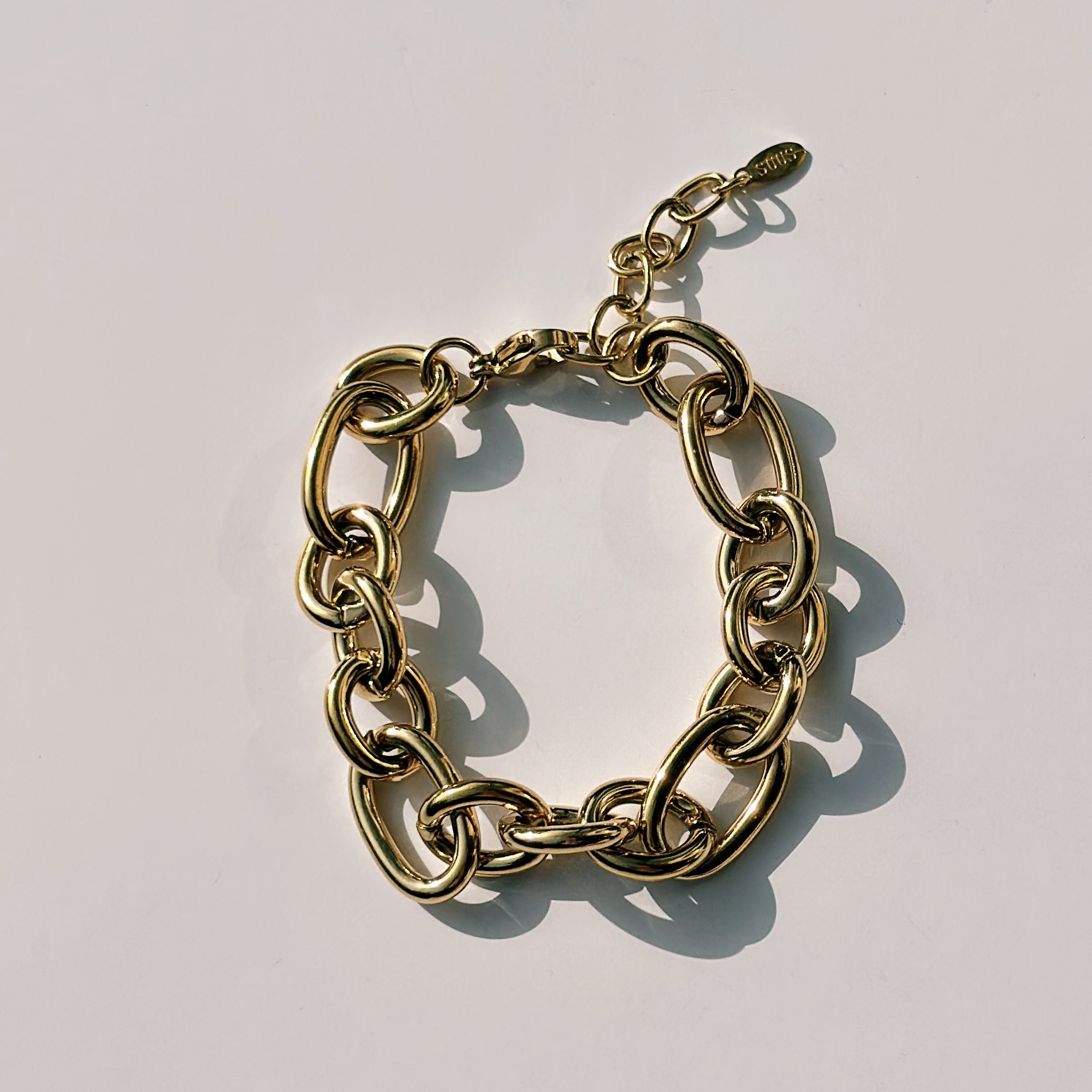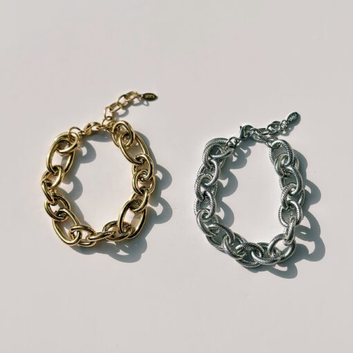 Armband Power Link is verkrijgbaar in goud en zilver, waardoor je hem makkelijk kunt combineren met andere sieraden.