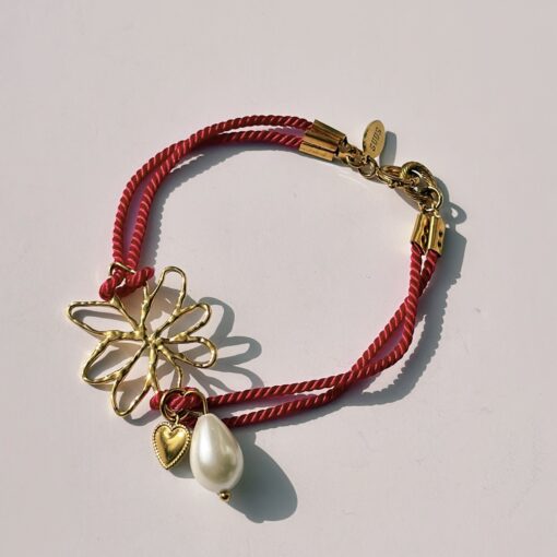 Armband Ruby Pearl is een speelse en elegante armband uit de Be-You-Ti-Ful collectie. Het roze koord in combinatie met de gouden bloem, het hartje en de subtiele imitatieparel geeft deze armband een unieke en vrouwelijke uitstraling.