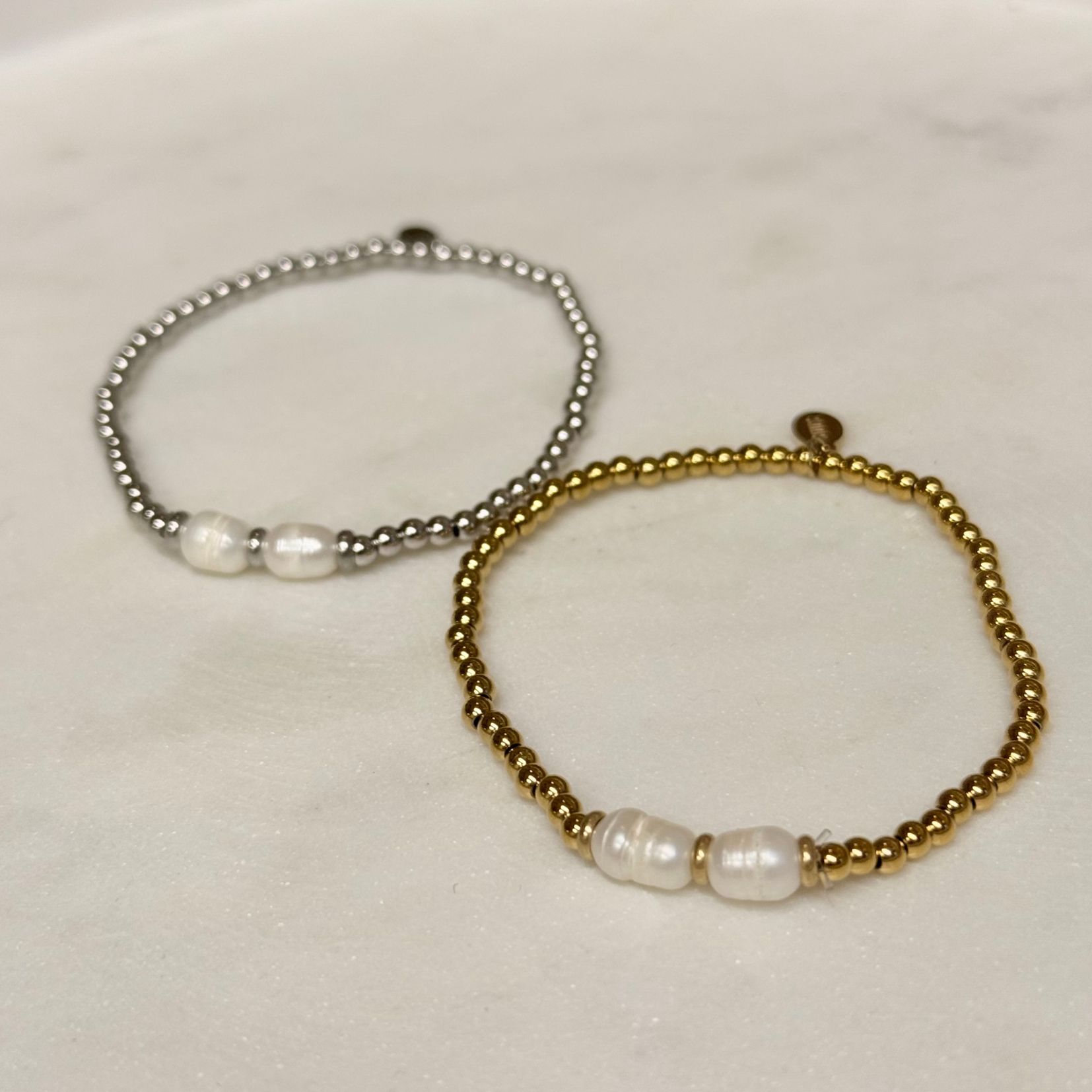 Armband Soft Pearl is subtiel, puur en tijdloos. De twee delicate parels vormen samen een soft-luxury accent dat iedere outfit elegant afmaakt. Perfect om solo te dragen, maar ook prachtig in een layered stack voor een speelse look.