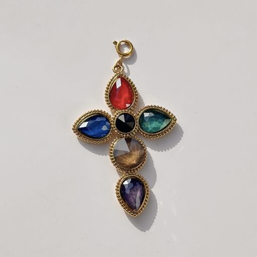 Bedel Rainbow Cross is een opvallende en kleurrijke bedel uit de Be-You-Ti-Ful collectie. De kruisvormige hanger is opgebouwd uit verschillende facet geslepen stenen in levendige kleuren zoals rood, blauw, groen, paars en goudtinten. Hierdoor krijgt de bedel een speelse en luxe uitstraling.