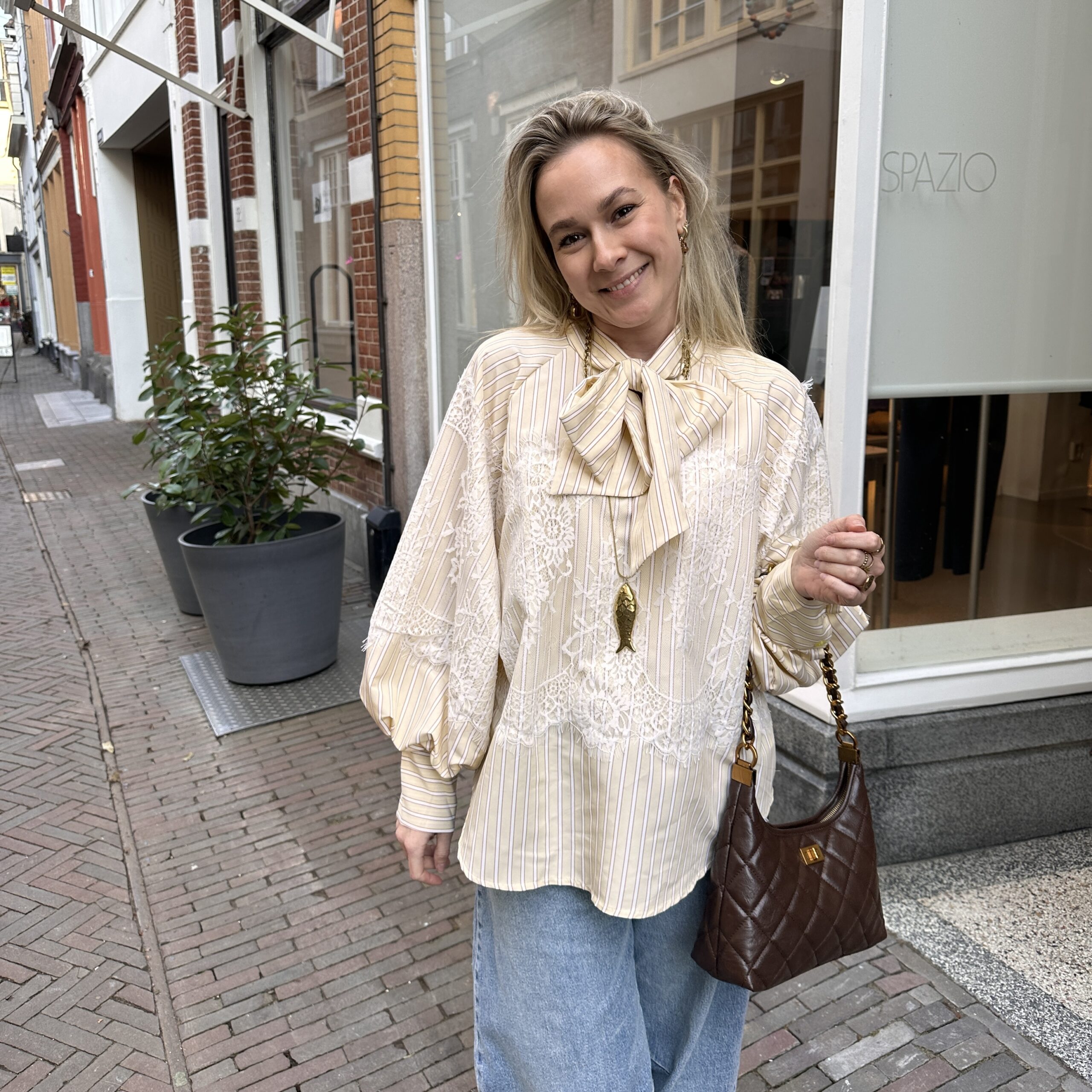 Blouse Lace Bow Stripe is een echte statement blouse met een romantische twist
