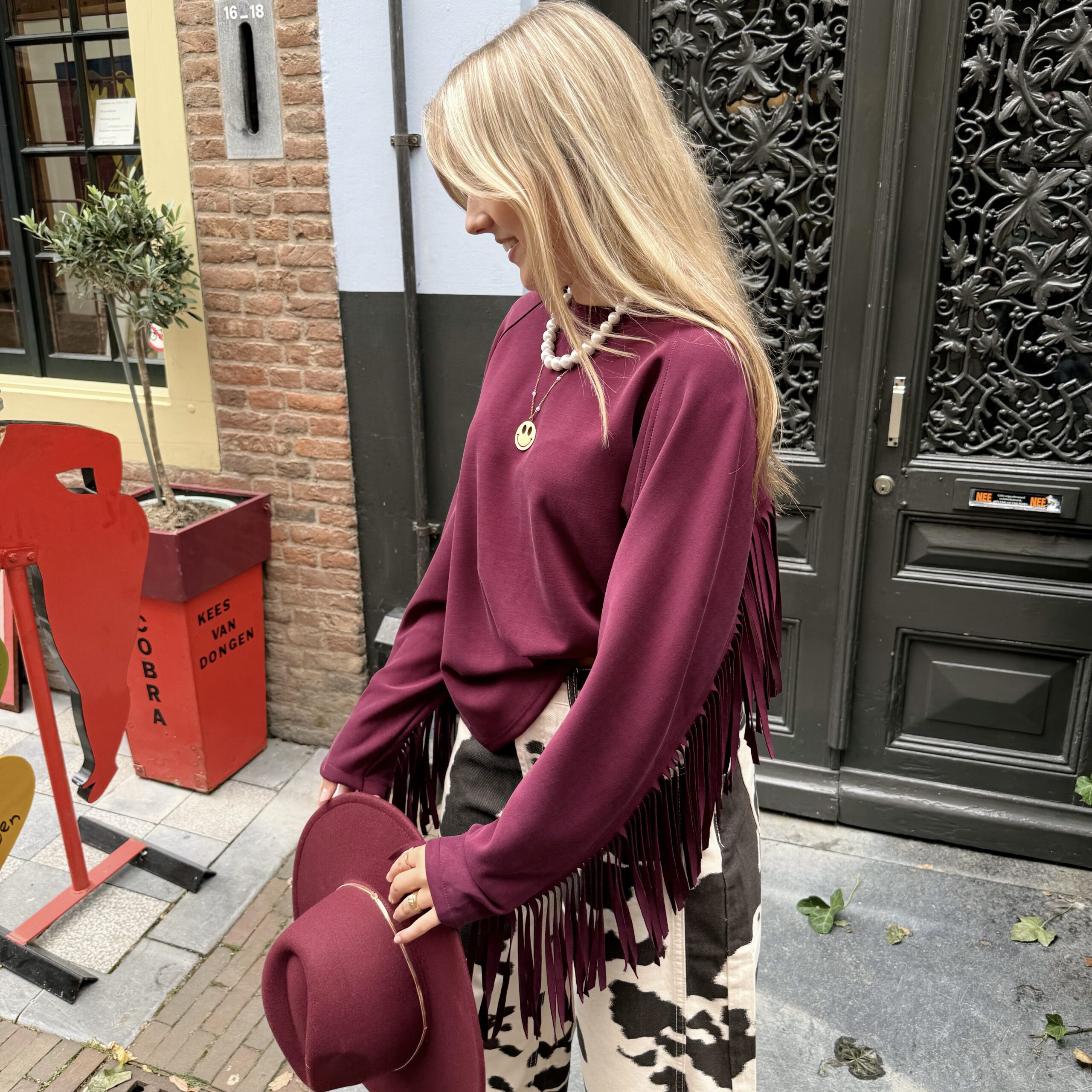 Boho Fringe Trui – Bordeaux