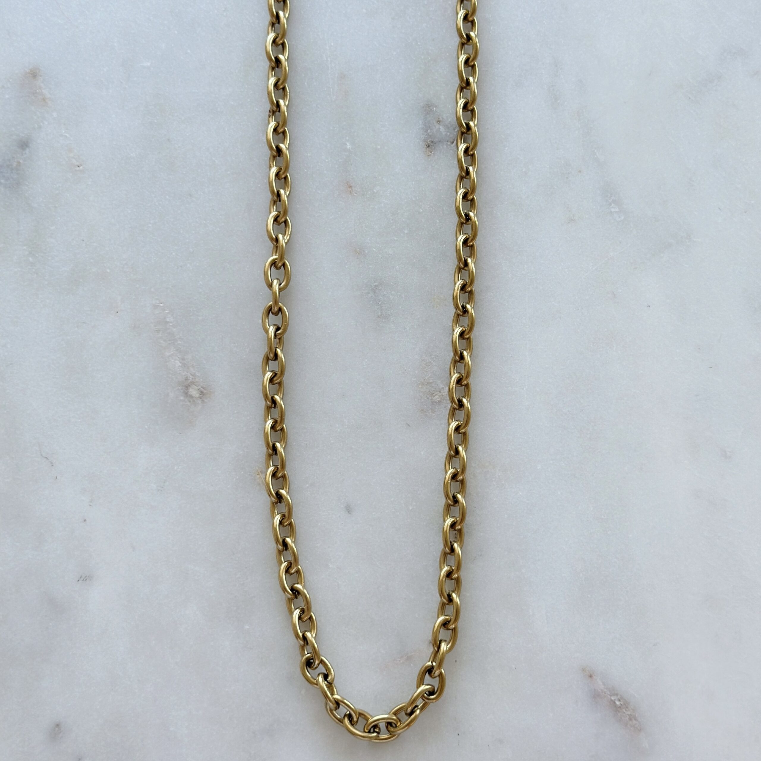 De perfecte ketting bold basic. Deze ketting heeft een chunky schakel die direct opvalt maar toch overal bij past. Draag ‘m solo voor een minimal statement of combineer met andere kettingen voor een layered look.