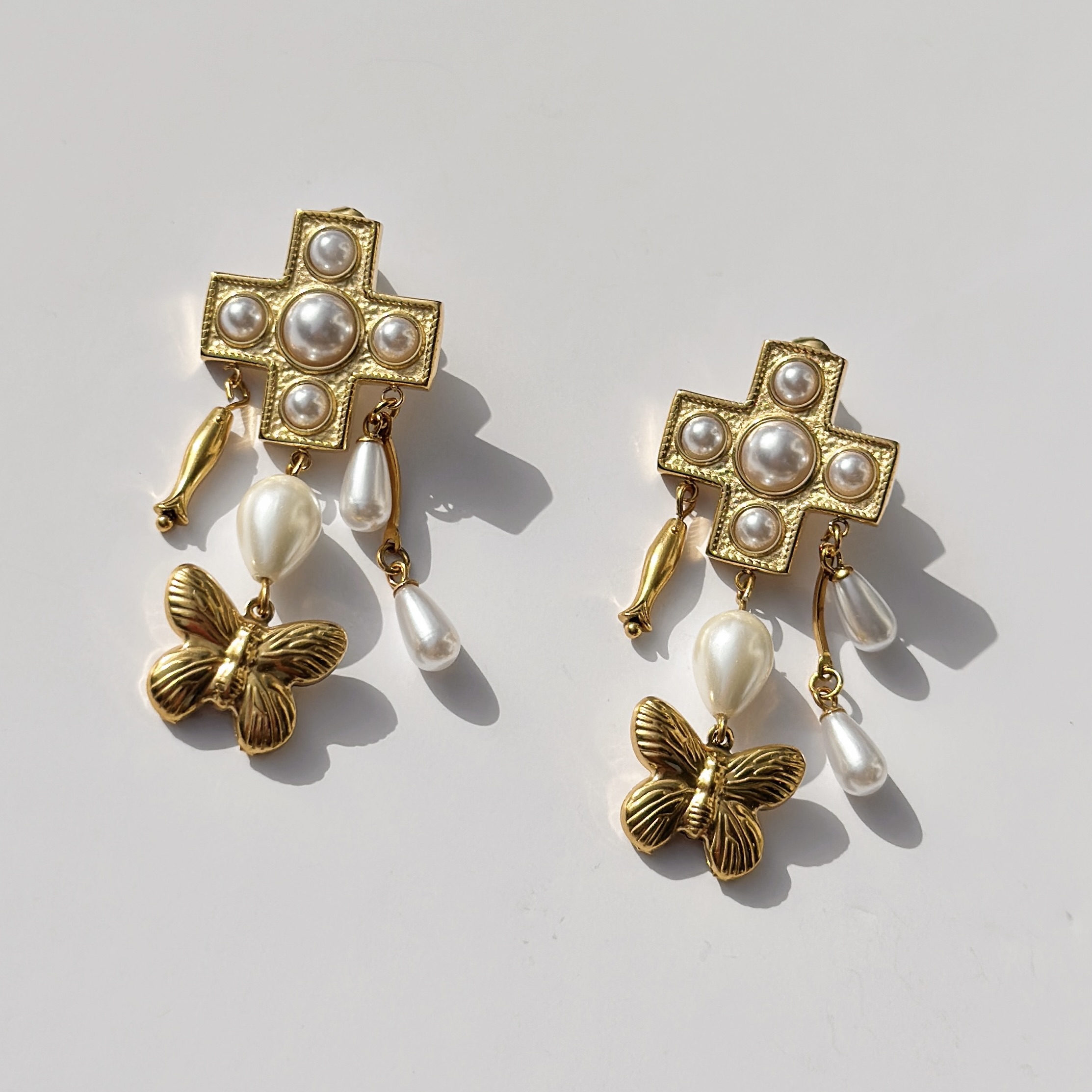Oorbellen Golden Butterfly Pearl