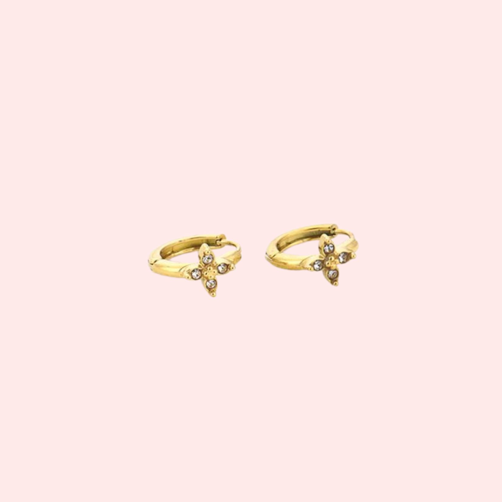 Oorbellen Star Sparkle Hoops Gold zijn fijne gouden hoops met een subtiel sterretje en kleine steentjes voor een zachte sparkle ✨