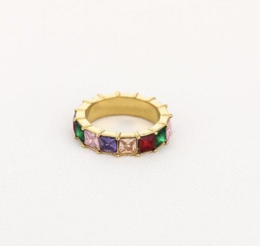 De vierkante geslepen steentjes in verschillende tinten zorgen voor een luxe, speelse uitstraling met een vintage touch.